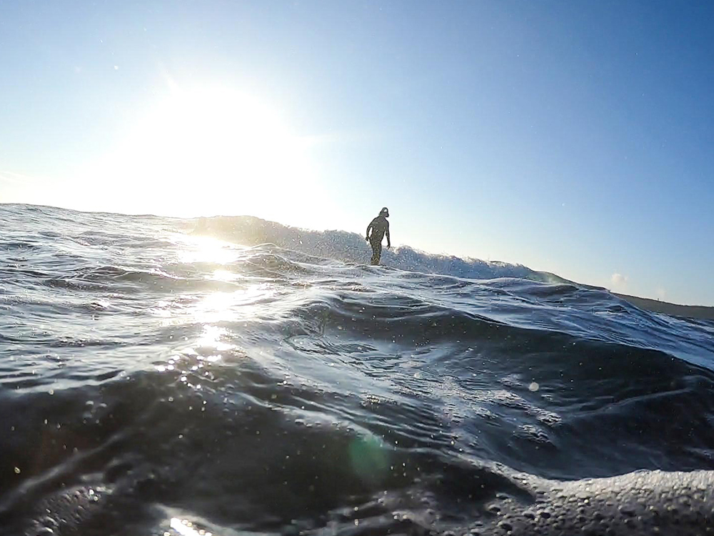 水平線から押し寄せる、自分にぴったりの波を選んでテイクオフ。