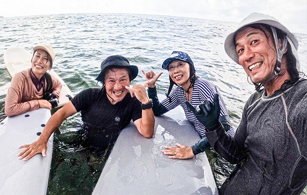 These two are such good friends… We always rent out a spot for them to surf stress-free. 🌊 They usually surf shortboards, but they enjoy Okinawa’s reef breaks with mid-lengths. ♪ They sometimes surf longboards, but their favorite thing to do in Okinawa is to enjoy the reef’s terrain and mellow surfing. ♪ During summer vacation, they surfed on Ikei Island with their daughter and her family, including the little ones. ♪ What a great time in Okinawa. 🌺✨ Watching the video brings back memories. 🙌