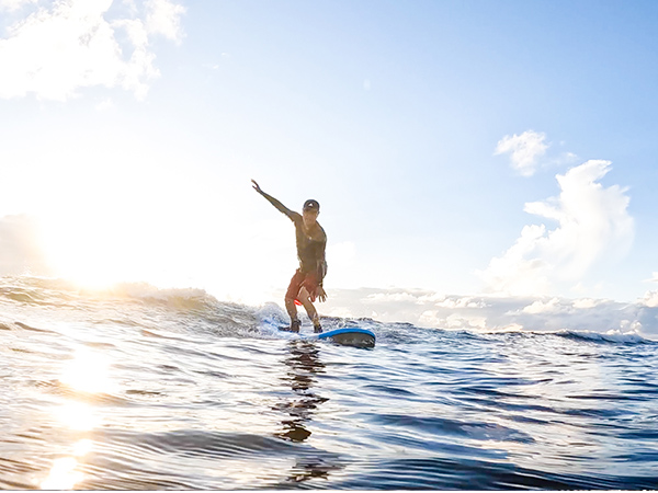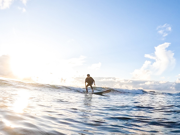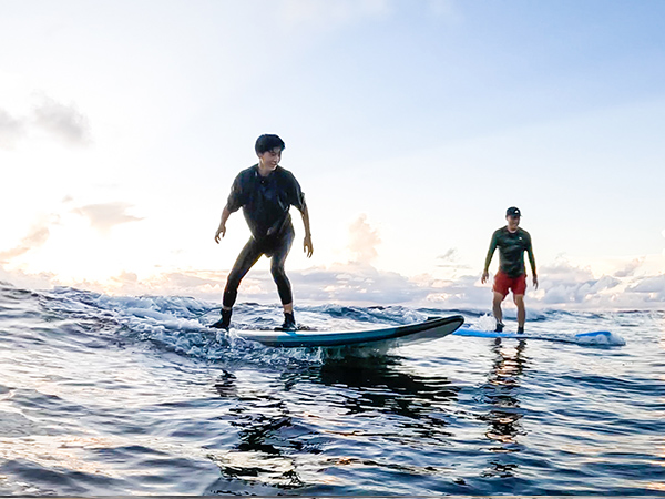 In Okinawa, you can surf on coastlines with two different characteristics: the inland sea and the open sea.