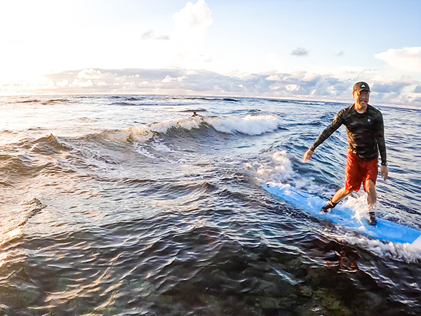 サンゴ礁を越えた向こう側の地形には力強い波が待っています。