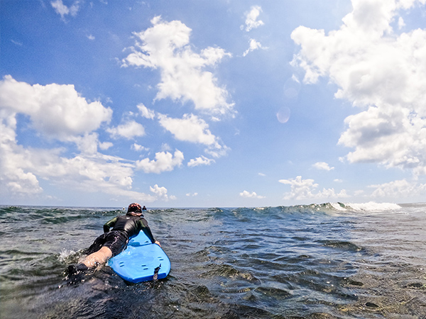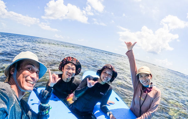 沖縄サーフガイド |リーフブレイクのトップから!!レギュラー・グーフィー同士だからできる幸せライディング〜♪