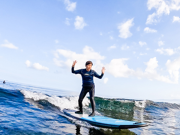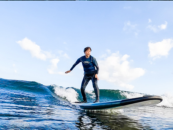 その後は波との融合を体で感じ、波のリズムに合わせてスピードの強弱を図る。