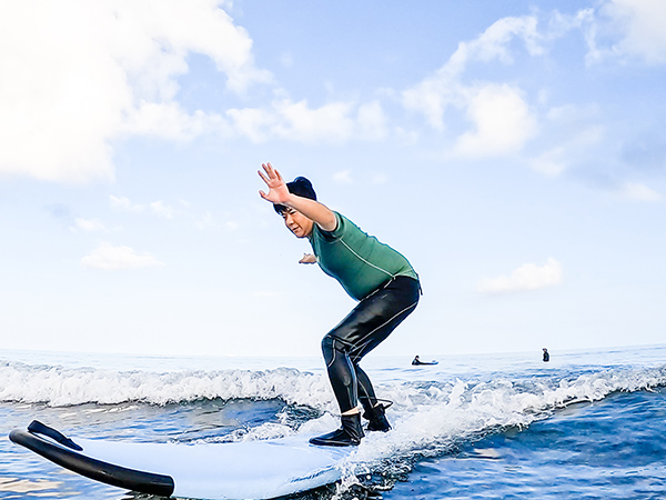 うねりをキャッチし、波を感じ最速テイクオフを心がけています。