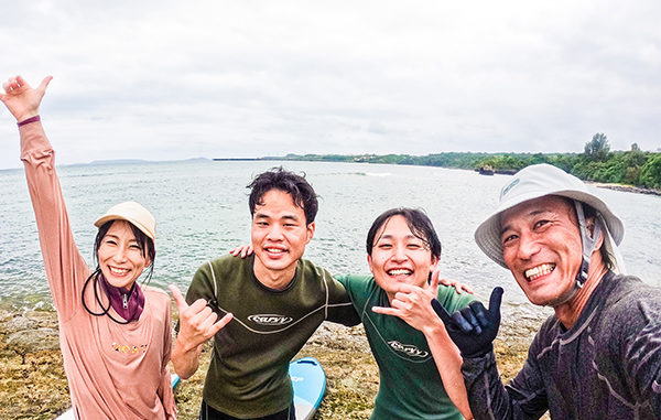 First time surfing. What do you want to prioritize when trying surfing for the first time? Weather, wave conditions, gear, board type, and choosing an experienced instructor. Island Color has been running surf schools for over 15 years. One thing we value is “holding classes in locations with challenging waves, without compromising even for beginners.” Surfing requires waves with enough power to push the board. Too gentle or too rough is not good; even experts like us have the perfect conditions to enjoy surfing. Experience is the key to making that judgment. Just because you’re a beginner doesn’t mean waves that are too gentle are not good. Riding challenging waves leads to the excitement of thinking, “Surfing is fun! I want to try it again!” Okinawa has reef breaks, but there are plenty of fun waves that even beginners can tackle. ♪ Come and try it with your friends and family! (^^)