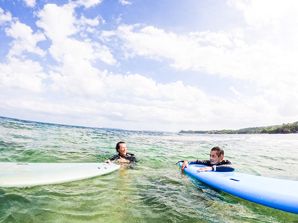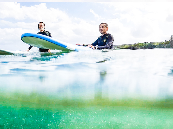 仲間と参加すれば同じ波をシェアするのも良し、譲り合い交互に乗るのも良し、とにかくたくさんの波に乗れる数時間のサーフタイム。