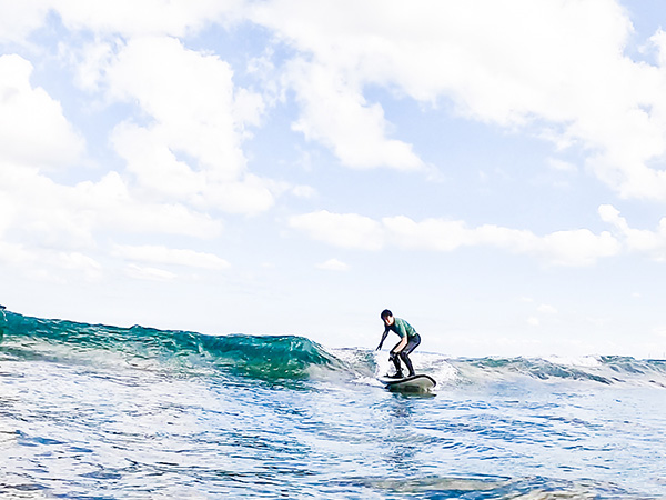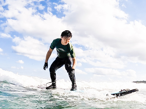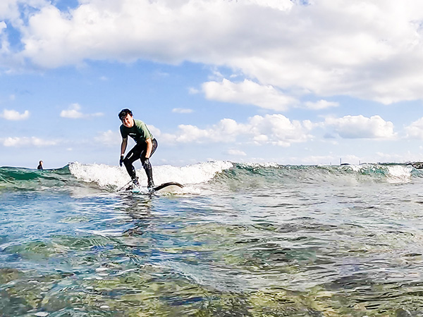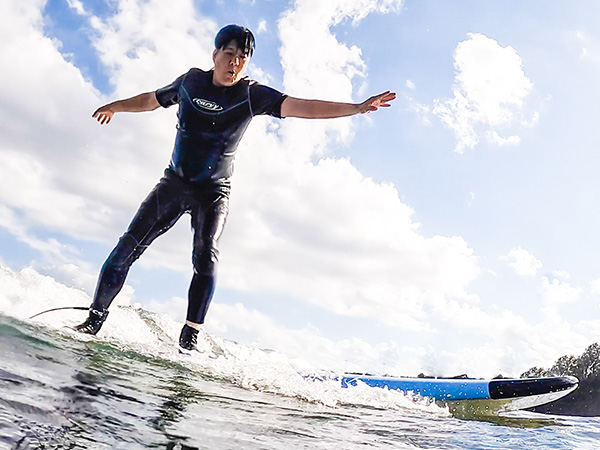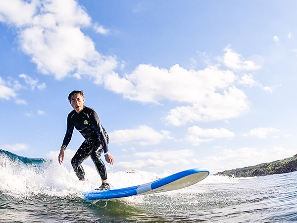 It’s fun, isn’t it? There’s an indescribable sense of exhilaration when you stand on the board while receiving the power of the wave.
