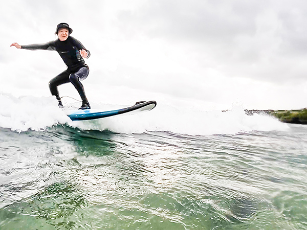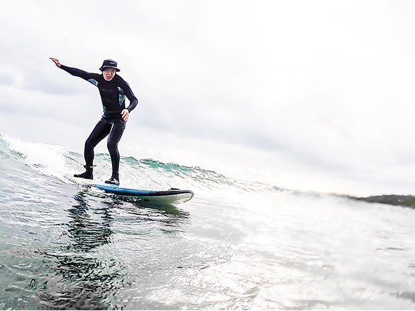 He loves staying in shape and stretching, and it’s part of his daily routine. He always shows us some really cool surfing scenes!