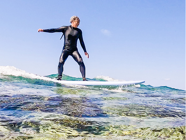 毎月のように遊びに来ていただく常連さんとロングボードセッション。