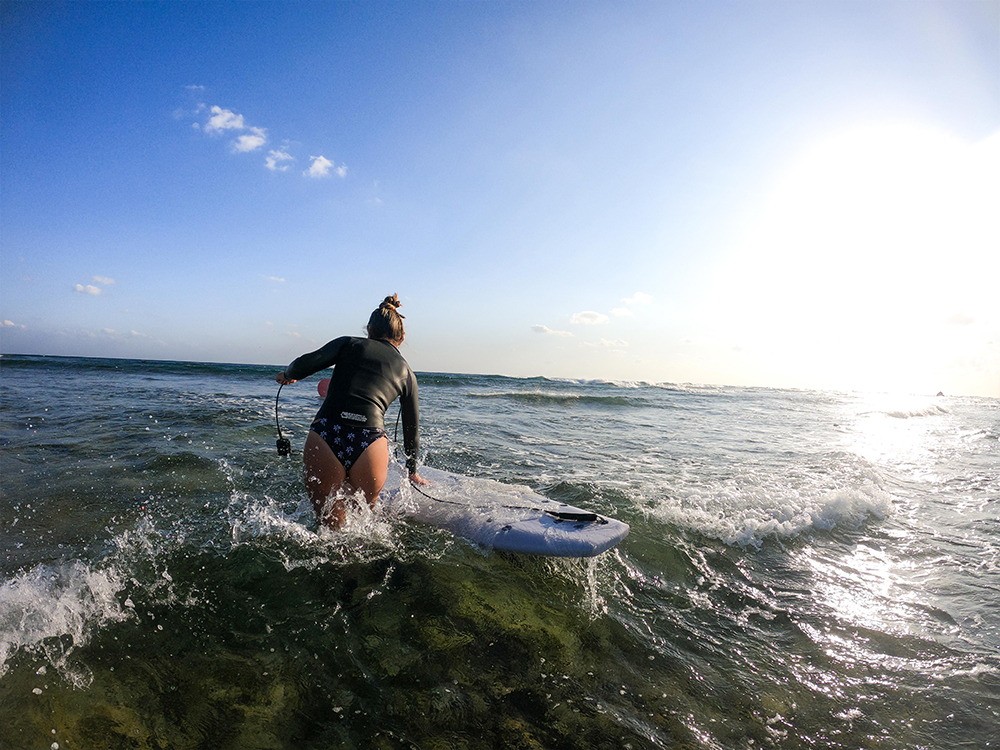 女性にはちょこっと大きめの波もきて、テイクオフをメイクできたときは有頂天になるほど嬉しい。