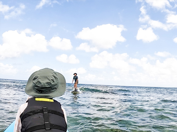 My son, an elementary school student, showed his adult perspective, saying he was a little worried about seeing big waves for the first time and how strong they were.