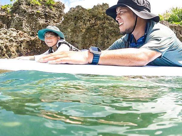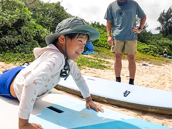 目の前でたくさん波に乗っているかっこいいお父さんの姿を見て