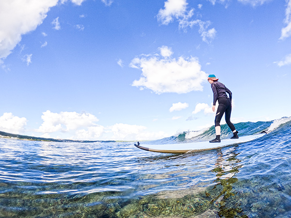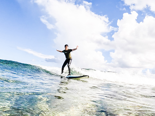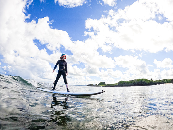 When you first try surfing, you always take off and stand up on your board in the “swell” position, where the wave is just starting to break and the power weakens a little. However, in Okinawa, you’ll ride the wave from the “swell” position, where you feel the most power, right from the start. What’s different about this? It’s an incredible experience: you’ll experience the sensation of starting out in a position that even experienced surfers with years of experience often find difficult, right from the start. What’s that feeling…? It’s an exhilarating feeling, overflowing with a sense of happiness you’ve never experienced before. During your surfing experience, your instructor will always position you well for the waves and push you, ensuring you have this incredible experience. Make your first surfing experience a wonderful one!! We’ll support you to the fullest! 🌊