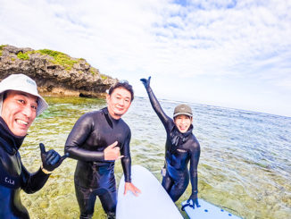 沖縄サーフガイド |【セット胸肩】沖縄リーフ、インサイドの水深ヒザ!?超絶恐怖だけで乗ると良い波すぎてつい微笑んでしまうサーファーたち。